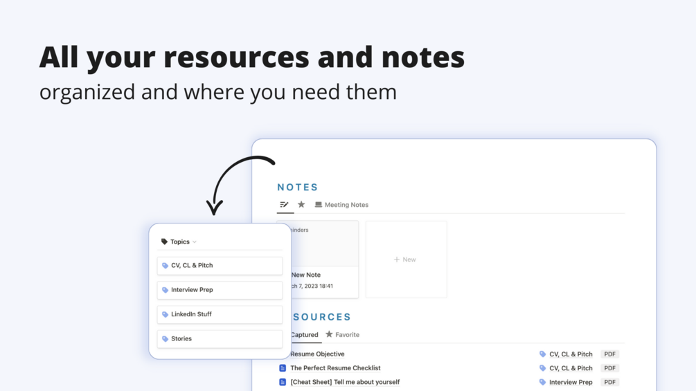 • Connect all your relevant Notes, Resources and Contacts with your Applications.